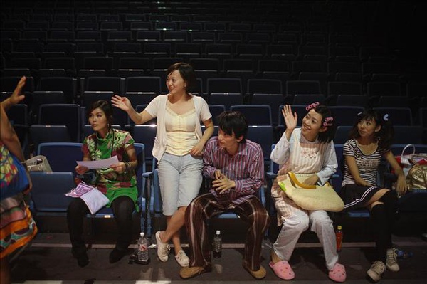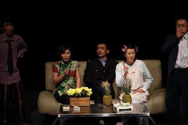 而這次的《禿頭歌女》雖然在舞臺上,因陋就簡地只從演員們家中七七八八地搬了沙發等簡單的桌椅,但整體表演,在史坦尼體系下教出來的學生算是成功,節奏,文本調整都算不錯,走位設計也很對稱而精密(甚至有點過於對稱),裡邊很多元素與口語都用上了北京或是中國的生活元素,例如讓主角 史密斯 太太看韓劇,讓瑪莉去少年宮之類的,最後兩對夫婦打架時,還把藝術總監孟京輝的劇名都拿來開玩笑,竟也幸運地因為孟大導的作品通俗性,沒有流於inside joke式的自high。