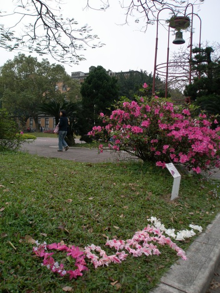 而在這個季節,台大正是杜鵑花開得艷艷,當年在飛車衝過椰林大道時,老是看到兩旁夾道排著某人的名字、I L U等張揚到不行的青春愛意,那時我還酸酸地想,這根本就是「落紅不是無情物,化作春泥更肉麻」嘛。